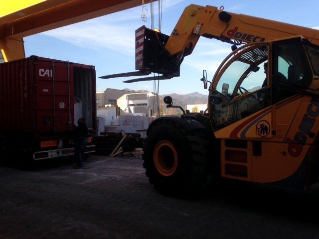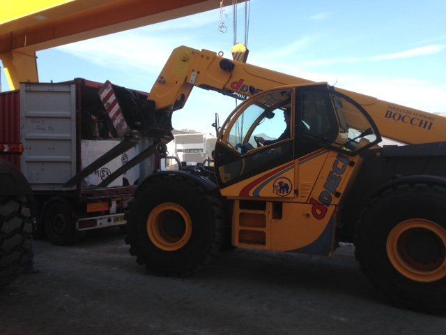 Idoneo per il carico e lo scarico di blocchi da container box, il mezzo semplifica le operazioni riducendo i costi e soprattutto il rischio per il personale a terra addetto all'imbragatura in quanto non è più necessario avere all'interno del container personale di assistenza.