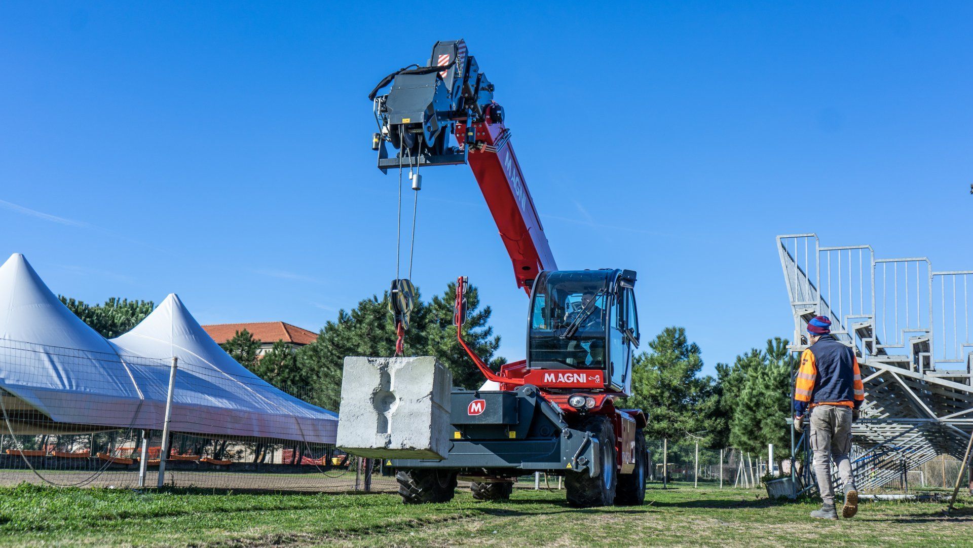 Tra i mezzi disponibili, anche un sollevatore telescopico Magni con portata di 30 tonnellate acquistato di recente dalla Manfredi & Bocchi srl.